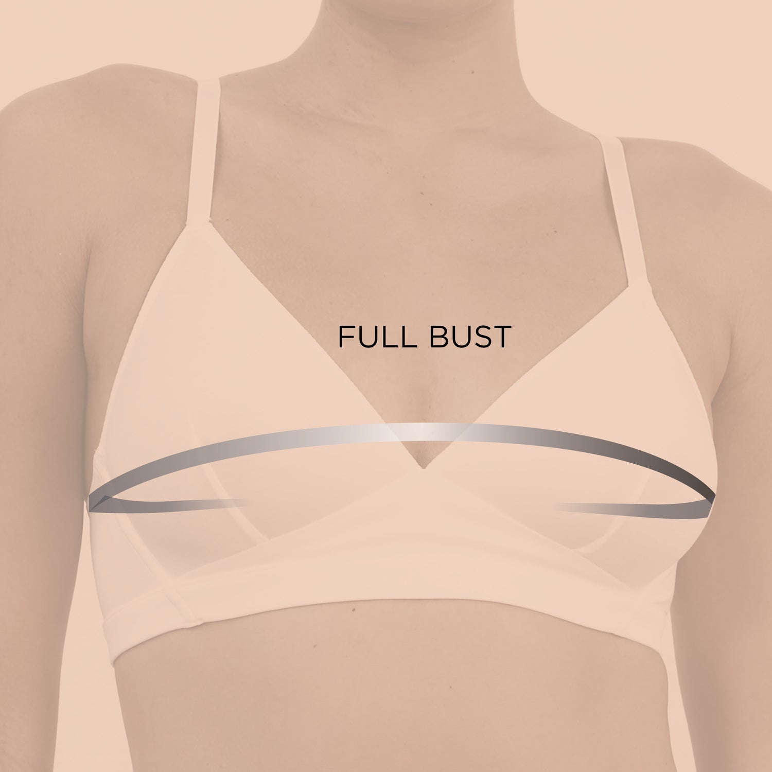 Measure around the fullest part of your bust. Keeping the tape measure as horizontal as you can across your back as you go around. This will give your full bust measurement.